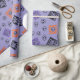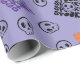 El "Papel envuelto de Halloween morado con cráneo de calavera" muestra calaveras dispuestas en un diseño cuidado y espeluznante, añadiendo un toque clásico de Halloween a tu envoltura de regalo.