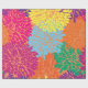 crisantemos multicolores sobre papel de envoltura naranja