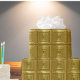 Papel decorativo y elegante para envolver regalos de oro con cuadrados de oro brillantes intrincadamente ligados para producir una fascinante ilusión 3D.