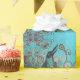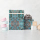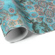 la pintura de un cuervo gordo feliz en un fondo azul brillante con rosa y el modelo de Paisley del círculo del oro hace este giftwrap fresco