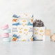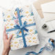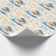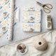 Deguste este divertido papel de envoltura con temática de pescado, con un patrón de un bonito pez saltador y un pequeño pez naranja, en un estilo acuarela. Con saludo "Cumpleaños saludos nadando a tu manera" el envoltorio de regalo puede ser personalizado con un nombre para un toque individual.