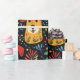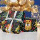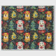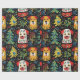 Pequeños perros adorables aparecen a lo largo de este papel de envoltura festivo. Son una delicia para tus Navidades regalar regalos a tus amigos y familiares amantes del perro. El diseño proviene del arte festivo y colorido del fauvismo y también de un poco de influencia del arte folclórico. El fondo negro resalta el aspecto colorido. Con las imágenes mascotas hay árboles navideños divertidos, vegetación, bayas imaginativas, hojas y otros detalles decorativos de la temporada navideña.