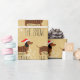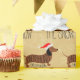 Regalo Dachshund a través del papel de envolver la nieve