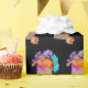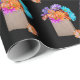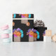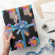 Colorido ramo de margarita en un saco de papel marrón sobre negro.