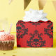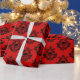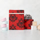 Regalo Damasco de cráneo negro sobre papel rojo brillante