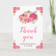 Hermosa tarjeta de agradecimiento de boda con calabazas rosa caliente y arreglos florales. Perfecta para una boda de otoño. Las palabras se pueden cambiar para adaptarse a tus propios detalles o requisitos