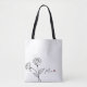 Celebra a mamá con estilo con esta elegante bolsa de tote floral blanca y negra, perfecta para el día de la madre. Con una flor de arte minimalista y un guión moderno de "Mamá" con un corazón rojo pequeño, esta moda y un diseño reflexivo mezclan belleza y función. Ya sea que se dirija al mercado, haciendo recados o disfrutando de un día fuera, este ligero tote de algodón es un recordatorio de tu amor. Ideal para las madres que adoran el arte floral, el diseño moderno y los regalos significativos. Excelente para: regalos del Día de la Madre, regalos de cumpleaños, nuevas madres y uso diario. Estilo: Minimalista, monocromo, elegante y moderno.