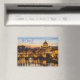 Imán de recuerdo con la hermosa ciudad de Roma, Italia, y el río Tíber.