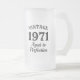 Regalo de tazas de cerveza con escarcha para el cumpleaños 50. 1971 Envejecimiento a la perfección. Cita divertida para la celebración del 50º cumpleaños. idea de regalo de Guay para los hombres de la colina; papá, padre, tío, abuelo, hijo, hermano, amigo, esposo, compañero de trabajo, jefe, colega, profesor, empleado, etc. Haga su propia cita de cualquier año. Diseño de doble cara con elegante plantilla de tipografía. Manly tomando regalos para los chicos.