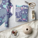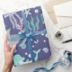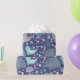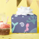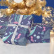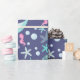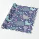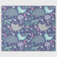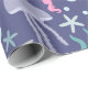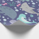 Este papel de envoltura con temática marina incluye una ballena, tiburón tigre, gelatina, tortuga marina y caballitos de mar, todos nadando en un mar azul marino profundo.