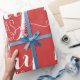 Deseos de feriado de merry | Papel de envolvimiento de vacaciones de 2014. Diseño tipográfico por ELKE CLARKE©. Preparar regalos de vacaciones para sus seres queridos se hace fácil con este versátil y simple documento de envoltura de vacaciones con las palabras "Deseándote una Feliz Navidad y un Feliz Año Nuevo" escrito en un guión blanco, texto de tipo de letra sobrepuesto sobre un sólido color de fondo rojo. Otros colores disponibles en la tienda o bajo petición.