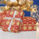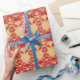 Regalo Dragones rojos sobre papel de envolver fondo dorad