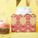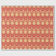 Un diseño digital en rojo compuesto por dragones entrelazados que crean un patrón con un fondo de tono dorado.