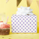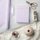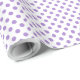 Un rollo de papel de envoltura, con un patrón de bonito de puntos de Polka Violeta sobre un fondo blanco. Parte de la colección "Sweet Violets" de Posh & Painterly.