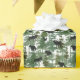 Este diseño artístico presenta árboles dibujados a mano y siluetas animales en un patrón repitiendo mosaicos básicos. Oso, alce, alce y cuervo esparcidos alrededor del bosque. Los colores principales son el blanco y el negro verdes. Por Melissa J Barrett