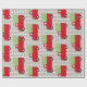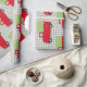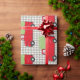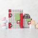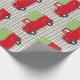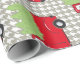 Capturas festivas de este papel de embalaje que el sentimiento con un camión rojo del vintage cargó con los árboles y en su manera de la granja de árbol de navidad. Nada anuncia el comienzo de las vacaciones muy como traer a casa del árbol del día de fiesta.