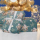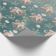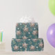 Papel de envoltura pintado con una acuarela de pulpo con conchas y algas frente a un fondo oscuro de mar verde profundo.