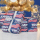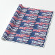 Celebra la temporada con este festivo papel de envoltura de Trump. Con las palabras Trump 2024 Take America Back with a navy blue backside with stars, con estrellas y la bandera estadounidense.