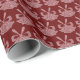 El envoltorio festivo incluye un patrón de campanas rosadas purpurinoso sobre fondo rojo oscuro.