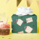 Papel envuelto con Navidades patrón de letras antiguas y sobres atados con cuerda. Cuidada acuarela sin costura con sellos postales sobre un fondo verde oscuro. Hermosos Navidades o patrón de Año Nuevo para envolver y decorar regalos de vacaciones de invierno