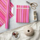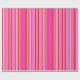 Este papel de envoltura se muestra en una impresión de varias bandas rosas y rojas.