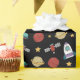 ¡Envuelva regalos de estilo cósmico con este papel de envoltura colorido en el espacio exterior! Con cohetes, planetas y estrellas, añade un toque galáctico lúdico que hace que cada regalo brille para la gran aventura de cumpleaños de tu pequeño astronauta.
