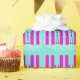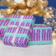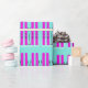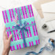Regalo Esquíes púrpura sobre papel de envoltura azul