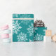 El papel de envoltura muestra el diseño 'Estrellas de nieve'. El fondo de color verde azulado es intercambiable.