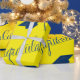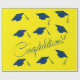 Felicitaciones gorra de graduación azul amarillo simple Papel de envolver.