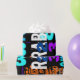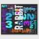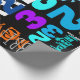 Diseño colorido con un gran 2023 + Feliz Año Nuevo + Conejo + Conejo ideograma. Diseño de papel envolvente con fondo negro. Puede cambiar fácilmente texto (fuente, color, tamaño y posición) y color de fondo haciendo clic en el botón personalizar.