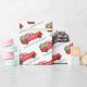 Esta camioneta roja está llena de regalos de colores vivos para algunos cumpleaños. Debajo del camión están las palabras "FELIZ CUMPLEAÑOS"