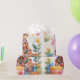 Sonriente jirafa personalizado en la selva con globos. Gran diseño para envolver regalos para niños de cualquier edad.