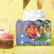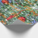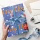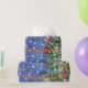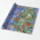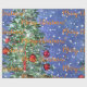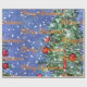 Feliz Navidad, elegante tipografía naranja, con un árbol de Navidad con ornamentos rojos y un fondo cielo nevado que repite el diseño de patrón para tu alegría festiva.