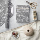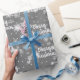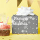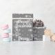 Texto de la Navidad de los Cerezos Blancos con un patrón de copos de nieve sobre fondo de puntos polka gris plateado. El texto se puede editar.