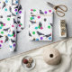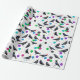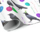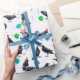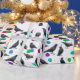 cuervos negros y cuervos con gorras y globos coloridos en este papel de envoltura de cumpleaños festivo.