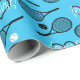 Papel de envoltura azul y blanco sin foco con patrón de tenis azul dulce, ideal para el fiesta con temática de tenis.