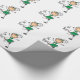 ¡El papel de embalaje con una figura linda animadora del palillo en un uniforme verde y el texto que lee van equipo!