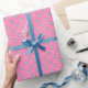 Flores azules, mullidas, contra un fondo rosado hacen de este el papel de envoltura perfecto para una niña, una joven o una mujer adulta. ¡Muchos elementos de coordinación en la tienda también!