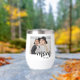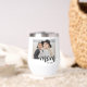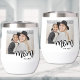 Simple Mamá Personalizada Tumbler De Vino Insulado. Celebra la maternidad con este diseño minimalista que incluye la palabra "mamá" en una letra en minúscula de serif en la parte inferior derecha para una mirada cálida y lúdica. Una banda blanca recorre la parte inferior, donde el texto se solapa entre el blanco y la foto para un toque limpio y moderno. Se puede añadir un "año est." personalizado para que sea especial para una futura madre, una nueva madre, o para celebrar a la madre en cualquier momento. El diseño se envuelve en dos lados del vaso, y se pueden incluir hasta 3 años o acortarlos (como 23' 24' 25'). Perfecto para el Día de la Madre o para el uso diario, este elegante vaso de vino aislado ofrece una manera sencilla y atemporal de honrar a la madre.