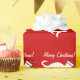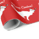 Silueta blanca roja del gatito del papel de embalaje del gato del navidad el |. Gato del gatito con el gorra de Papá Noel.