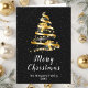 Esta elegante tarjeta de vacaciones de moda puede ser personalizada con su nombre familiar. El diseño incluye un árbol de Navidad de cinta dorada y negra con regalos. El texto combina el guión manuscrito y las fuentes sans serif modernas para un aspecto elegante y sofisticado. La caída de la nieve, los copos de nieve y las chispas dan un toque festivo y mágico.