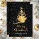 Esta elegante tarjeta de vacaciones de moda puede ser personalizada con su nombre familiar. El diseño incluye un árbol de Navidad de cinta dorada con un regalo. El texto combina el guión manuscrito y las fuentes sans serif modernas para un aspecto elegante y sofisticado. La caída de la nieve, los copos de nieve y las chispas dan un toque festivo y mágico.