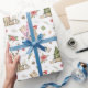 Este papel de envoltura de Navidades presenta un Golden Retriever que usa corbatas de reno.