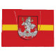 Bolsa grande de regalo con diseño con bandera de Vilna, capital de Lituania; bandera roja con franja amarilla y escudos de armas con dos leones dorados sosteniendo un escudo en el centro