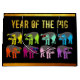 8 cerdos con gafas + Año del cerdo (grabado en grunge sin personalizable con efecto de corte para el fondo dorado). Gran bolsa de regalo original y única para el Año Nuevo chino del cerdo 2019 o cumpleaños (personas nacidas en Año Cerdo). Etiqueta de regalo coincidente, papel de envoltura, papel de tejido, tarjeta de saludo, postal, franqueo y más... — "El cerdo (豬) es el duodécimo y último signo de las ramas terrenales (亥). En el ciclo Sexagenario continuo, cada 12 años corresponde a Hai, y comúnmente se llama "Año del Cerdo" (豬 年). Hay cinco tipos de cerdos, con el nombre de los elementos chinos. En orden, son: Metalizado, Agua, Madera, Fuego y Tierra. En el zodiaco japonés y el zodiaco tibetano, el cerdo se sustituye por el jabalí[1]. En el zodiaco de Dai, el cerdo es reemplazado por el elefante. En el Gurung zodiac, el cerdo es reemplazado por el ciervo. (...) Se puede decir que las personas nacidas dentro de estos límites de fechas han nacido en el "Año del Cerdo", aunque también llevan la siguiente señal elemental: 10 de febrero de 1923 - 29 de enero de 1924 = Cerdo acuoso de agua, 4 de febrero de 1935 - 23 de enero de 1936 = Cerdo de madera 47 a 9 de febrero de 1948 = Cerdo de fuego, 8 de febrero de 1959 - 27 de enero de 1960 = Cerdo de la Tierra, 27 de enero de 1971 - 14 de febrero de 1972 = Cerdo Metalizado, 13 de febrero de 1983 = Cerdo de agua, 3 1 de enero de 1995 - 18 de febrero de 1996 = Cerdo de madera, 18 de febrero de 2007 - 6 de febrero de 2008 = Cerdo de fuego, 5 de febrero de 2019 - 24 de enero de 2020 = Cerdo de la Tierra, 23 de enero de 20001 2 = Cerdo Metalizado (...)" Wikipedia