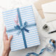 Regalo Guay Blue | Papel de ajuste de franjas blancas