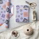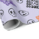 El "Halloween Skulls Seamless Purple Wrapping Paper" presenta cráneos en un patrón impecable, creando una apariencia sutil pero espeluznante que es genial para envolver regalos de Halloween.