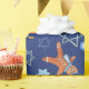 Espectaculares nevados de color agua, menorah, sufganiyot, dreidels y más decoran este divertido papel envuelto de Hanukkkah.