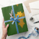 Regalo Holly de oro sobre papel verde oscuro