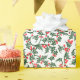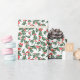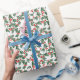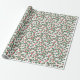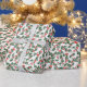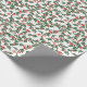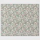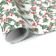 Papel de envoltura festivo con un patrón vintage de vacaciones de color verde con y bayas rojas brillantes.